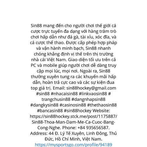Website: https://sin88hockey.stck.me/post/1175887/Sin88-Thoa-Man-Dam-Me-Ca-Cuoc-Bang-Cong-Nghe. Sin88 mang đến cho người chơi thế giới cá cược trực tuyến đa dạng với hàng trăm trò chơi hấp dẫn như đá gà, tài xỉu, xóc đĩa, và cá cược thể thao. Được cấ
