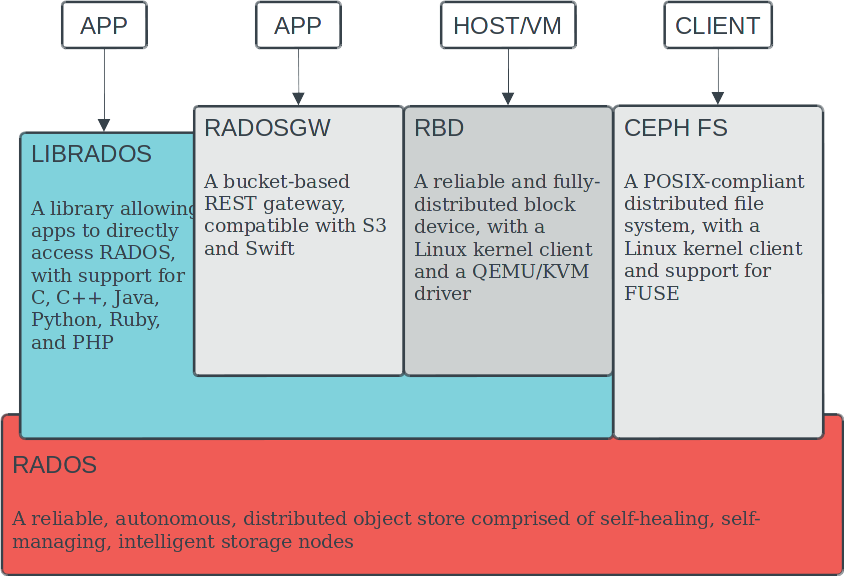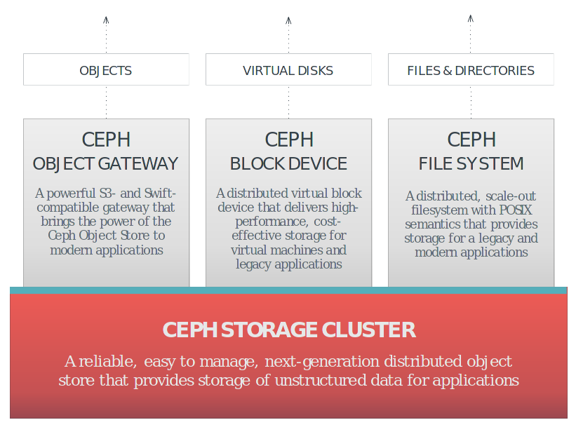 - Ceph es un excelente storage para OpenStack debido a ser altamente escalable, de alta disponibilidad.