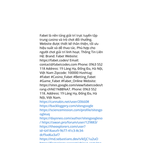 Website: https://sites.google.com/view/fabetcodes/trang-ch%E1%BB%A7. Fabet là nền tảng giải trí trực tuyến tập trung casino và trò chơi đổi thưởng. Website được thiết kế thân thiện, tối ưu hiệu suất và dễ thao tác. Phù hợp cho người chơi giải trí lin