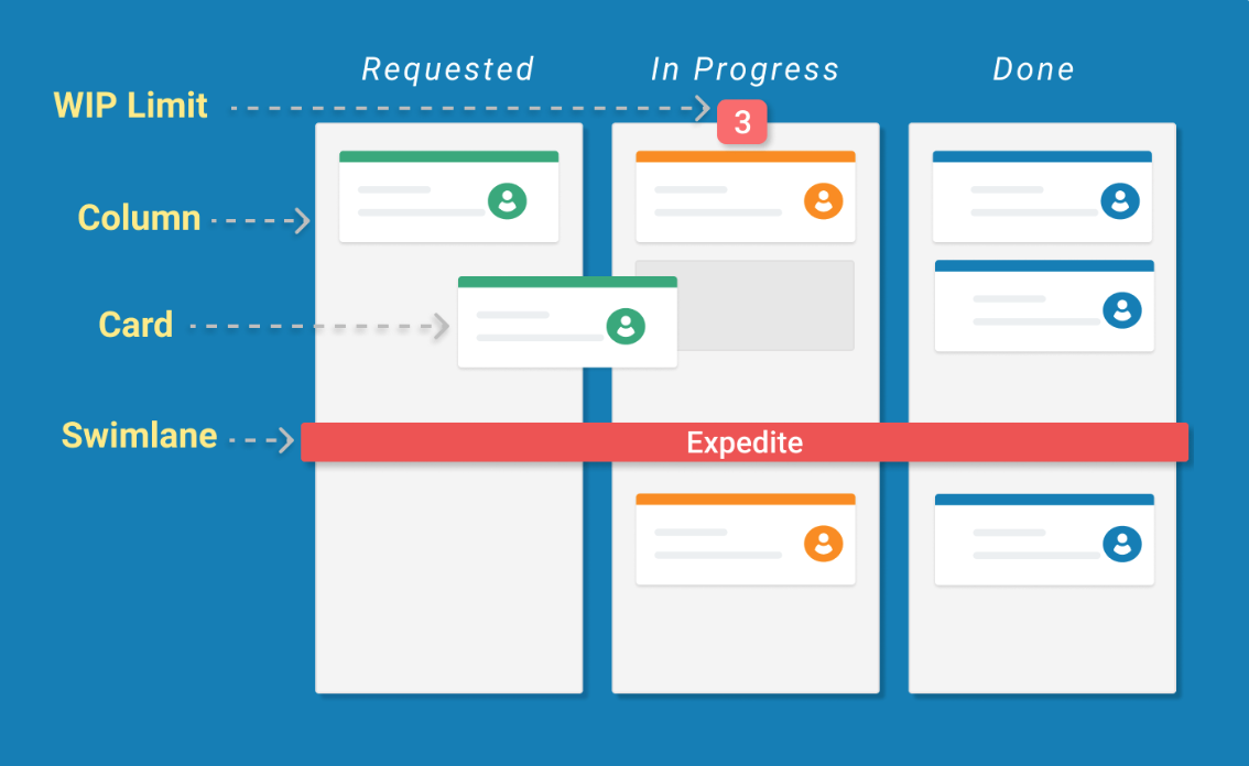Kanban is a work management system design to help you visualize your work, limit work in progress and maximize efficiency, which we call workflow.