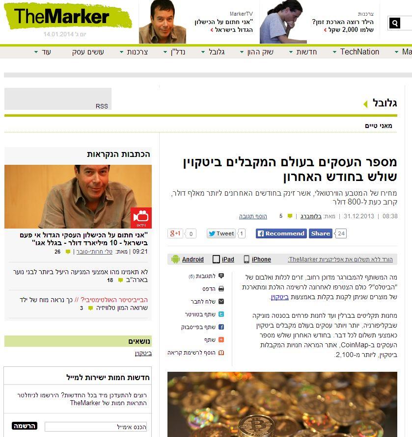 כ - 80 בתי עסק רשומים בויקי כמקבלים ביטקוין