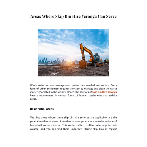 Areas Where Skip Bin Hire Yeronga Can Serve