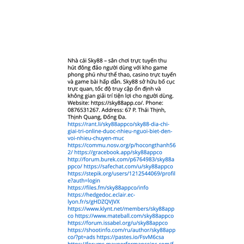 Website: https://sky88app.co/https://sky88app.co/ Cổng game Sky88 – sân chơi trực tuyến thu hút đông đảo người dùng với kho game phong phú như thể thao trực tuyến, live casino và các tựa game bài thú vị. Nền tảng này nổi bật với thiết kế hiện đại, dễ sử dụng, khả năng