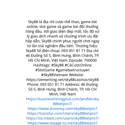 Website: https://zenwriting.net/sky88casinox/sky88 Sky88 là địa chỉ cược thể thao, game bài online, slot game và game bài đổi thưởng hàng đầu. Với giao diện đẹp mắt, tốc độ xử lý giao dịch nhanh và chương trình ưu đãi hấp dẫn, Sky88 chinh phục người