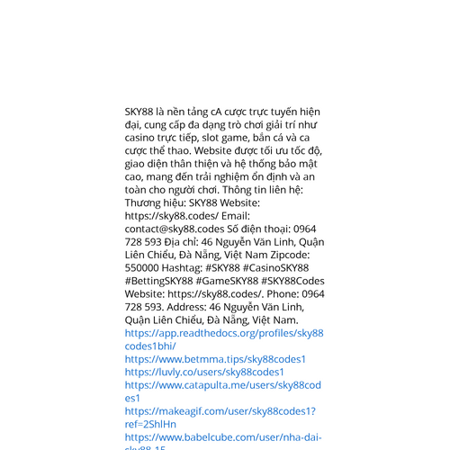 Website: https://sky88.codes/. SKY88 là nền tảng cA cược trực tuyến hiện đại, cung cấp đa dạng trò chơi giải trí như casino trực tiếp, slot game, bắn cá và ca cược thể thao. Website được tối ưu tốc độ, giao diện thân thiện và hệ thống bảo mật cao, ma
