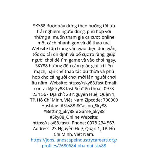 Website: https://sky88.fast/. SKY88 được xây dựng theo hướng tối ưu trải nghiệm người dùng, phù hợp với những ai muốn tham gia ca cược online một cách nhanh gọn và dễ thao tác. Website tập trung vào giao diện đơn giản, tốc độ tải ổn định và bố cục rõ