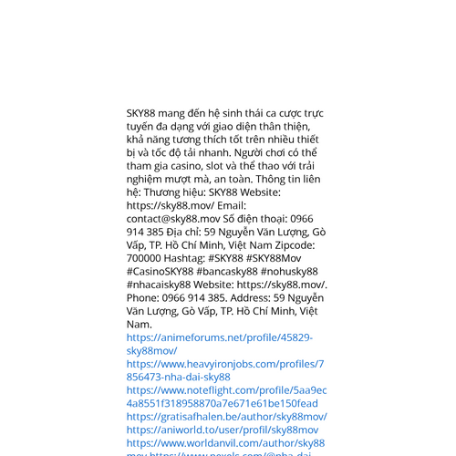 Website: https://sky88.mov/. SKY88 mang đến hệ sinh thái ca cược trực tuyến đa dạng với giao diện thân thiện, khả năng tương thích tốt trên nhiều thiết bị và tốc độ tải nhanh. Người chơi có thể tham gia casino, slot và thể thao với trải nghiệm mượt m