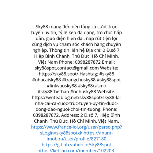 Website: https://writeablog.net/sky88spot/sky88-la-nha-cai-ca-cuoc-truc-tuyen-uy-tin-duoc-dong-dao-nguoi-choi-tin-tuong. Sky88 mang đến nền tảng cá cược trực tuyến uy tín, tỷ lệ kèo đa dạng, trò chơi hấp dẫn, giao diện hiện đại, nạp rút tiện lợi cùng