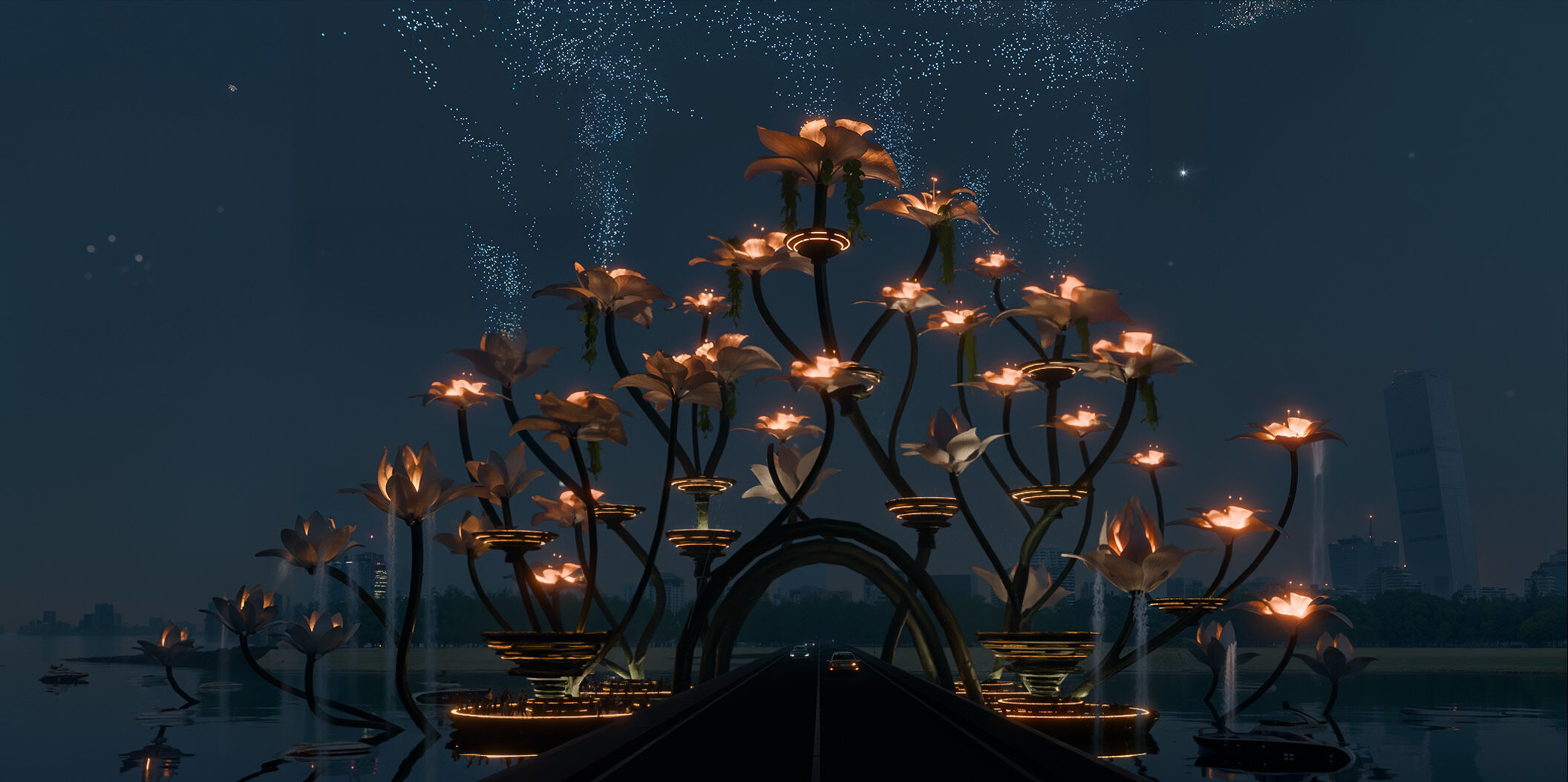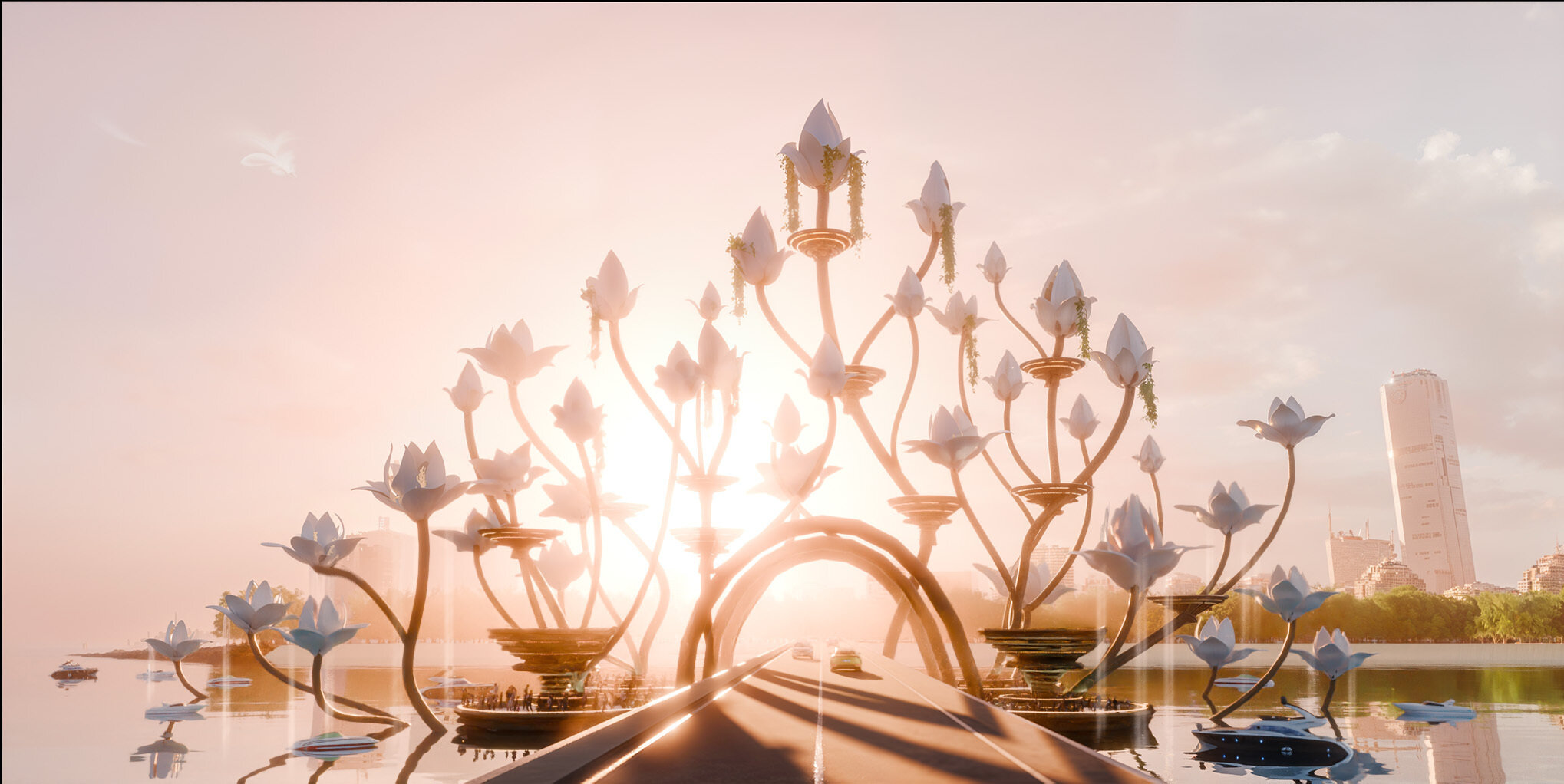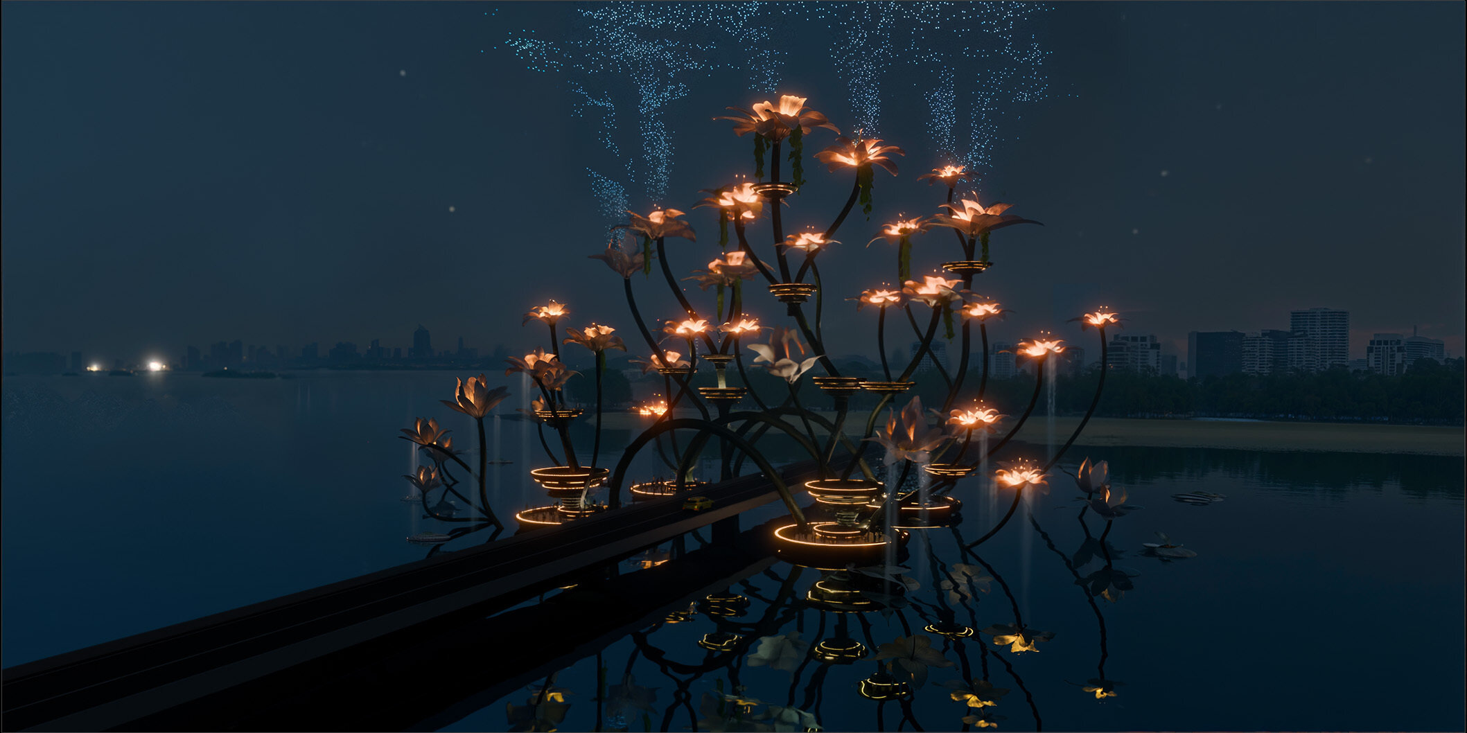 It features organic forms that bloom from day to night, viewing platforms accessible from the water and built-in lighting and drone technology to enable spectacular ‘show’ moments the will wow visitors.