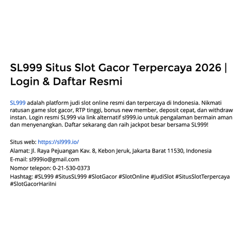 SL999 situs slot online terpercaya dengan game gacor hari ini. Login cepat, bonus melimpah, dan kemenangan mudah. Daftar sekarang di SL999! Situs web: https://sl999.io/