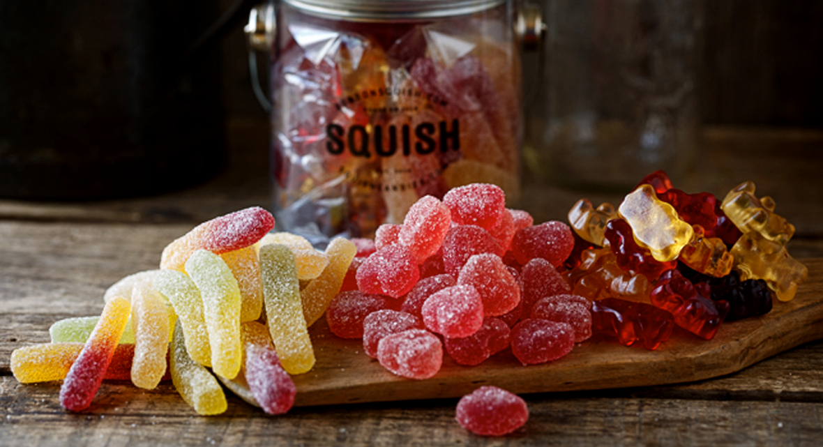 "Welcome to Squish. We don’t just sell regular gummy bears. We sell gummies crafted from the highest quality ingredients possible. Made in the ancestral homeland of gummy bears, in the magical woods of southern Bavaria, we have seen what imagination and good taste can produce."