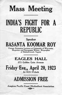 Poster for an Indian Independence Meeting in San Francisco in 1923. University of California Berkley Libraries.