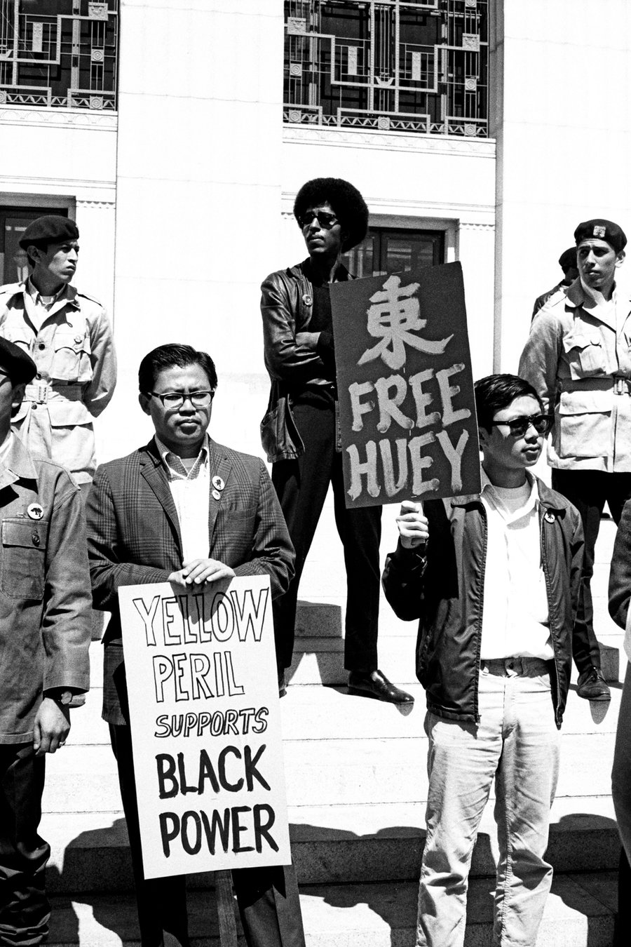 Asian American Demonstrators Rally for Black Panther Party Co-Founder Huey P. Newton's Release from Prison in 1969, by Roz Payne. Roz Payne Sixties Archive, University of Nebraska Lincoln.