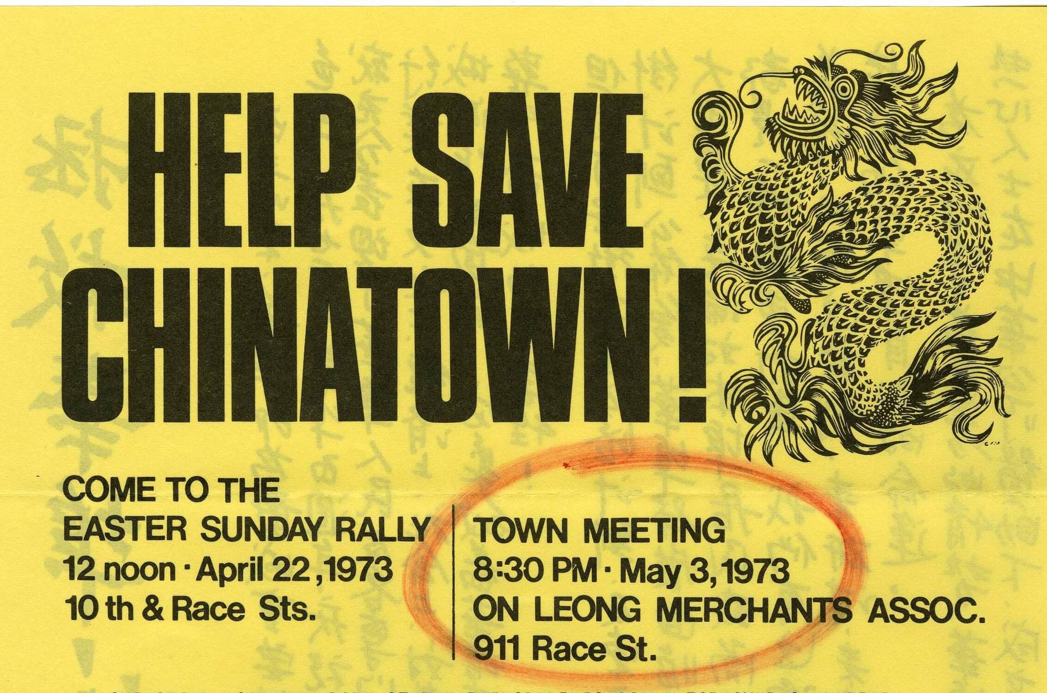 Top: Help Save Chinatown!. unknow artist. Historical Society of Pennsylvania. Bottom: Vehicles Move Along The Vine Street Expressway, by Donald D. Groff. Via The Encyclopedia of Greater Philadelphia.
