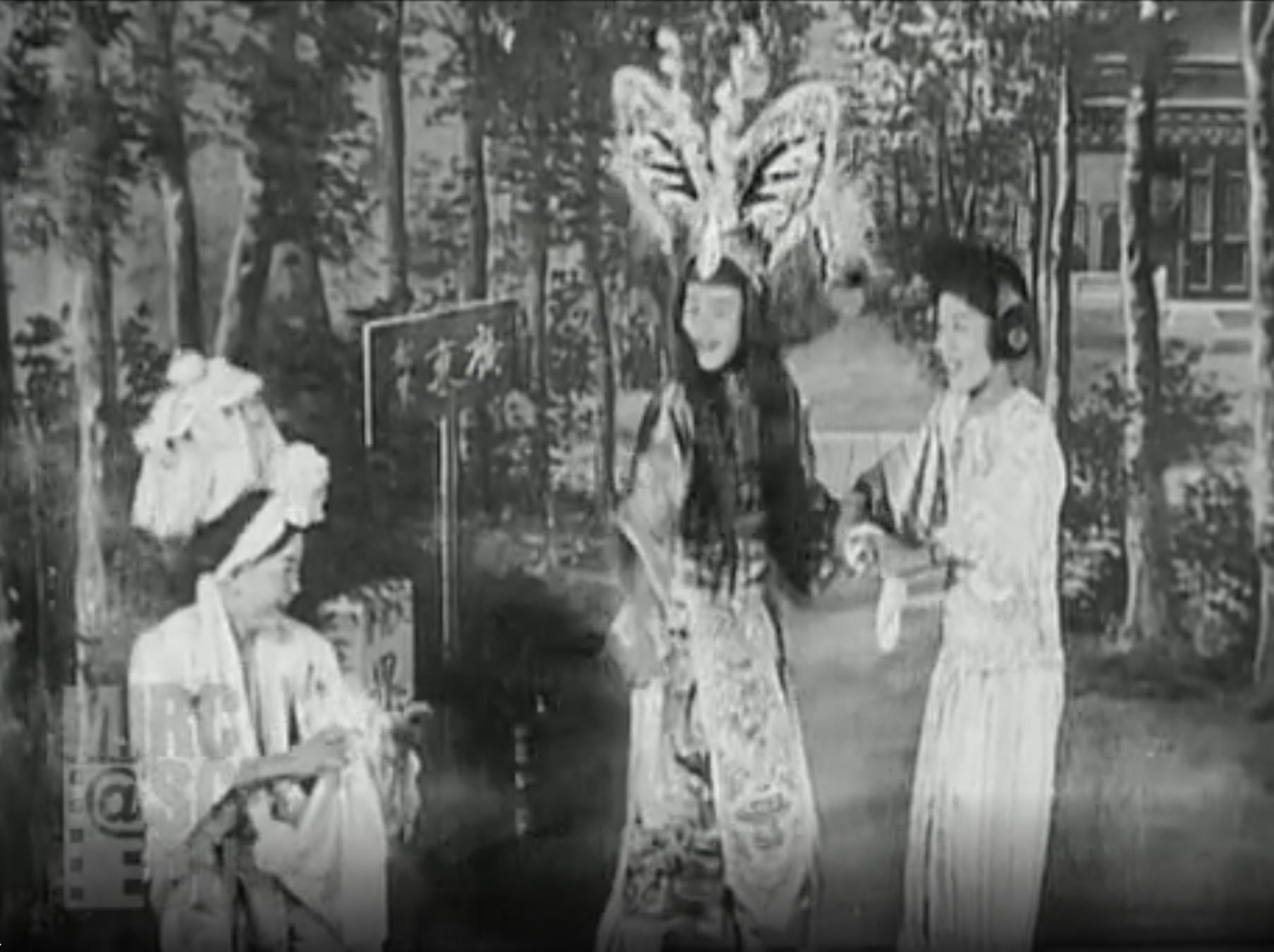 Still from a 1924 Fox Newsreel about the opening of the Mandarin Theater in San Francisco. The opera is entitled "Emperor's Daughter."