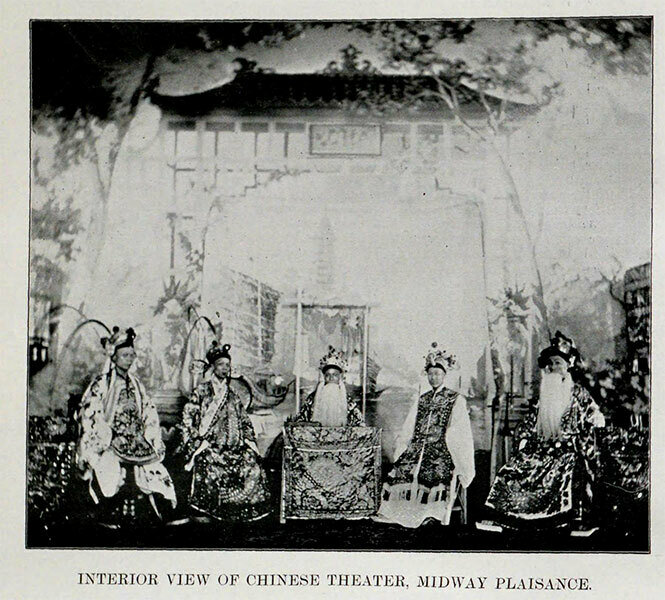 Chinese opera was featured in many World's Fairs. This photo shows the interior of the Chinese theater at the World's Columbian Exposition in Chicago in 1893.