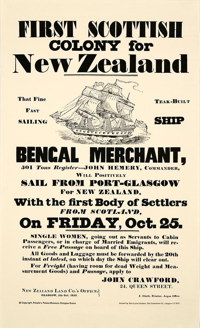 New Zealand Company poster, by J. Clark. Alexander Turnbull Library, NZ