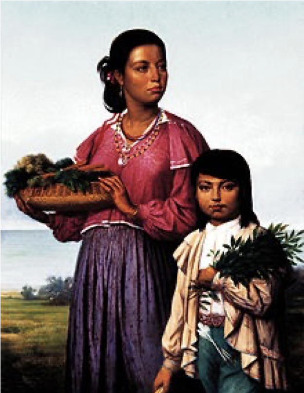 Two Chitimacha Indians, by François Bernard. {PD-Art|PD-old-70-expired}, via Wikimedia Commons.