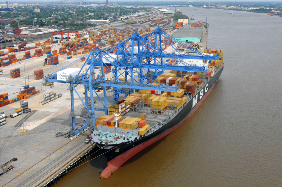 MSC Marina docked at Port of New Orleans, by Gnovick. CC BY-SA 3.0, via Wikimedia Commons.