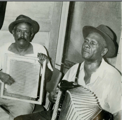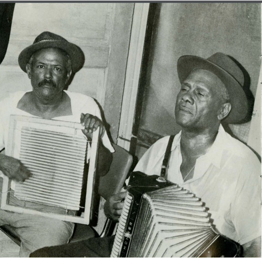 Wallace Gernger - Rubboard, Paul Me Zei - Accordion, photo by Chris Strachwitz. Arhoolie Records.