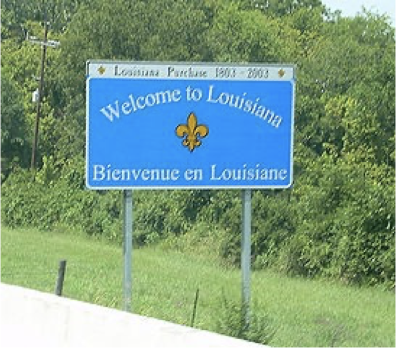 Welcome to Louisiana Road Sign, photo by ErgoSum88. Public Domain, via Wikimedia Commons.