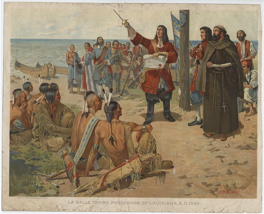 LaSalle Taking Possession of Louisiana A.D. 1682, by J. N. Marchand. National Museum of American History.
