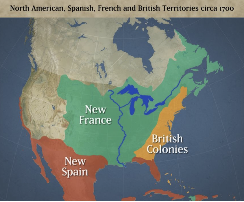 North American, Spanish, French, and British Territories Circa 1700, unknown creator. Courtesy of Ambrose Video Publishing Inc.