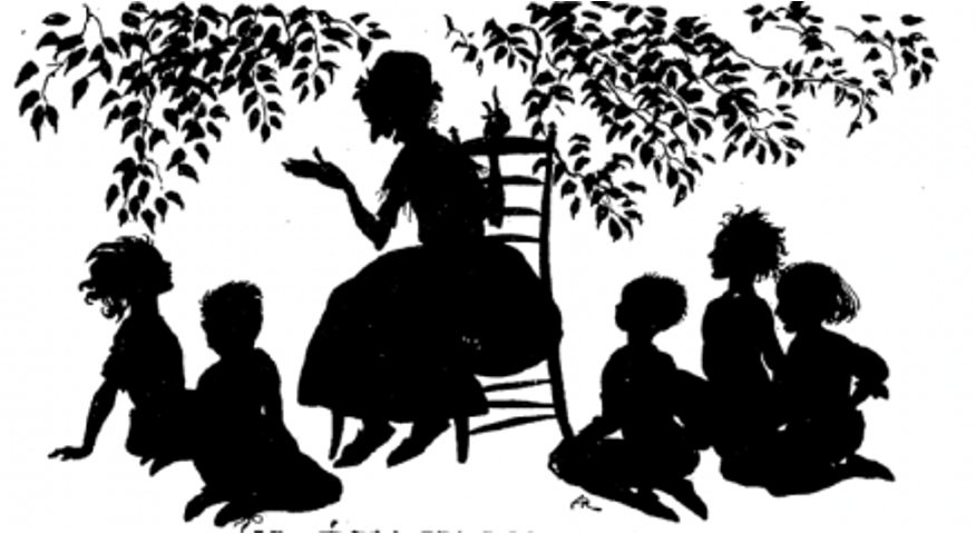 Mother Telling Stories, by unknown artist. Public Domain, via Karen's Whimsy.