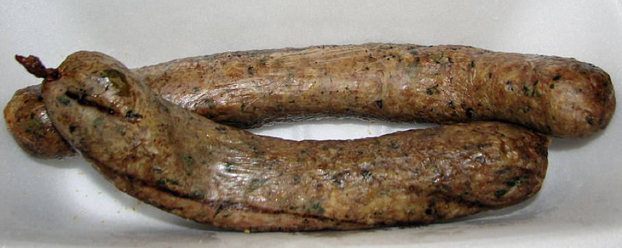 Smoked Boudin Blanc, by Nsaum75, CC BY-SA 3.0, via Wikimedia Commons.