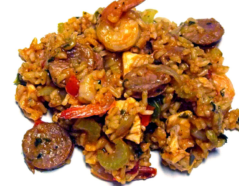 Homemade Jambalaya, photo by Mark Miller. CC BY-SA 3.0, via Wikimedia Commons.