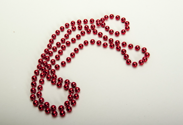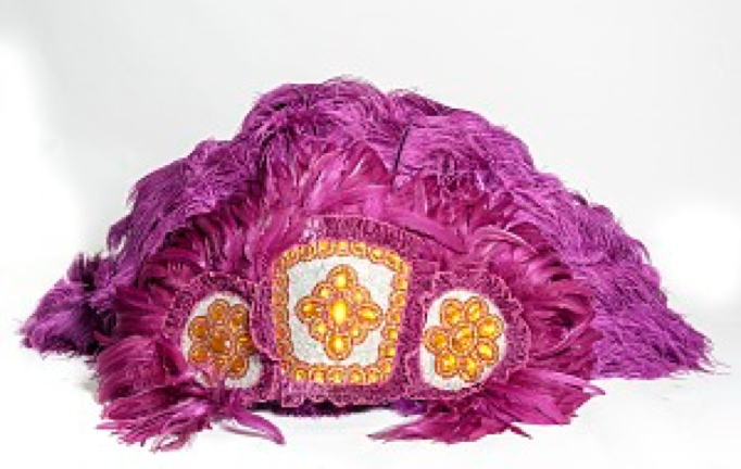Left: Mardi Gras Headdress. Below: Mardi Gras Beads. Unknown artists. Anacostia Community Museum.
