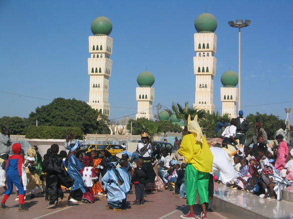 Above: Mardi Gras Dakar, by Ji-Elle, Public Domain, via Wikimedia Commons. (Dakar, Senegal) Right: Panorama do sambódromo da Marquês de Sapuca, by Gresasc, CC BY-SA 4.0, via Wikimedia Commons. (Rio, Brazil)