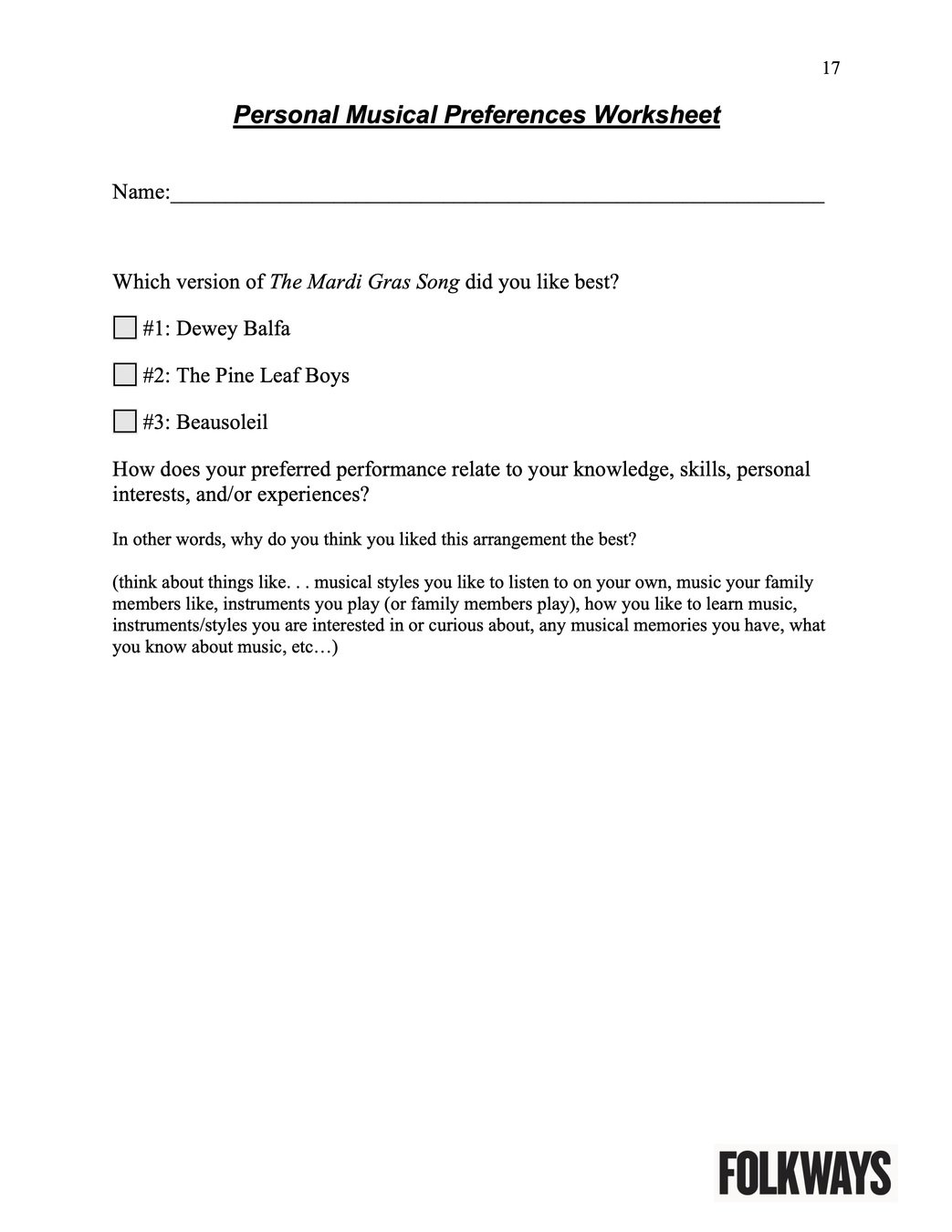 Next, you will listen to and analyze three different versions of “The Mardi Gras Song.”