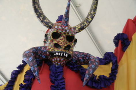 Above: Pleneros in the Street at Fiesta de la Calle San Sebastian 2018, photo courtesy of Ricardo Alcaraz. Right: Carnaval in Puerto Rico, by Anztowa, CC BY-2.0, via Flickr.