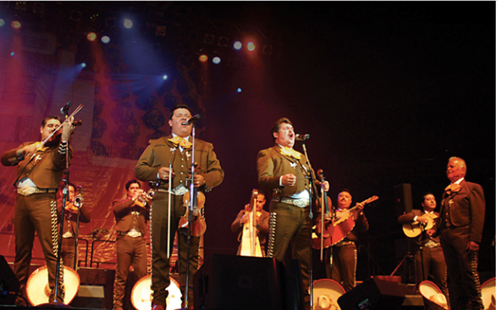Mariachi Los Camperos Performing on Stage, photograph by Daniel Sheehy. Smithsonian Folkways Recordings.