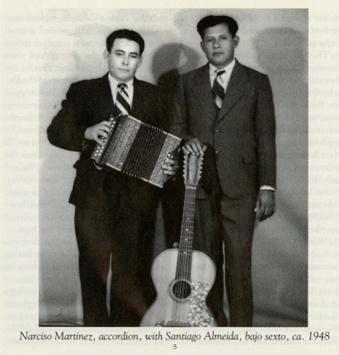 Narciso Martinez, Accordion, with Santiago Almeida, Bajo Sexto, unknown photographer. Arhoolie Records.