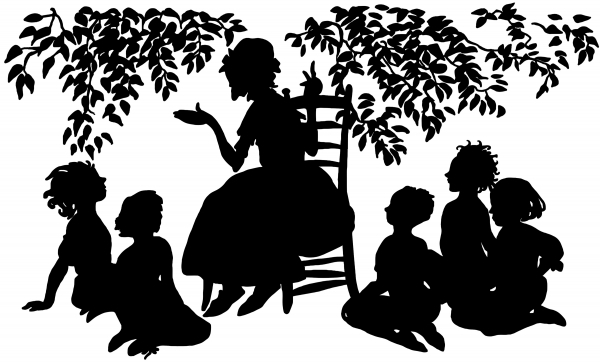 Mother Telling Stories, by unknown artist. Public Domain, via Karen's Whimsy.