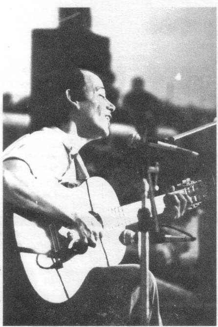 Silvio Rodriguez at a Street Concert, photo by Rena Benmayor. Paredon Records.