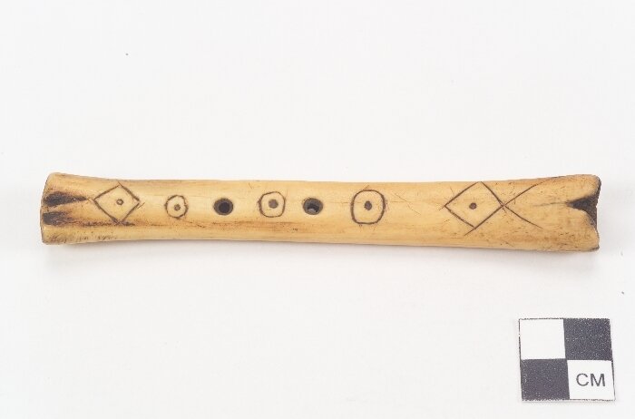Right: Panpipes, collected by Elayne Zorn. Below: Flute from the Andes, Collected or purchased from local residents by Alpheus Hyatt Verrill. National Museum of the American Indian.