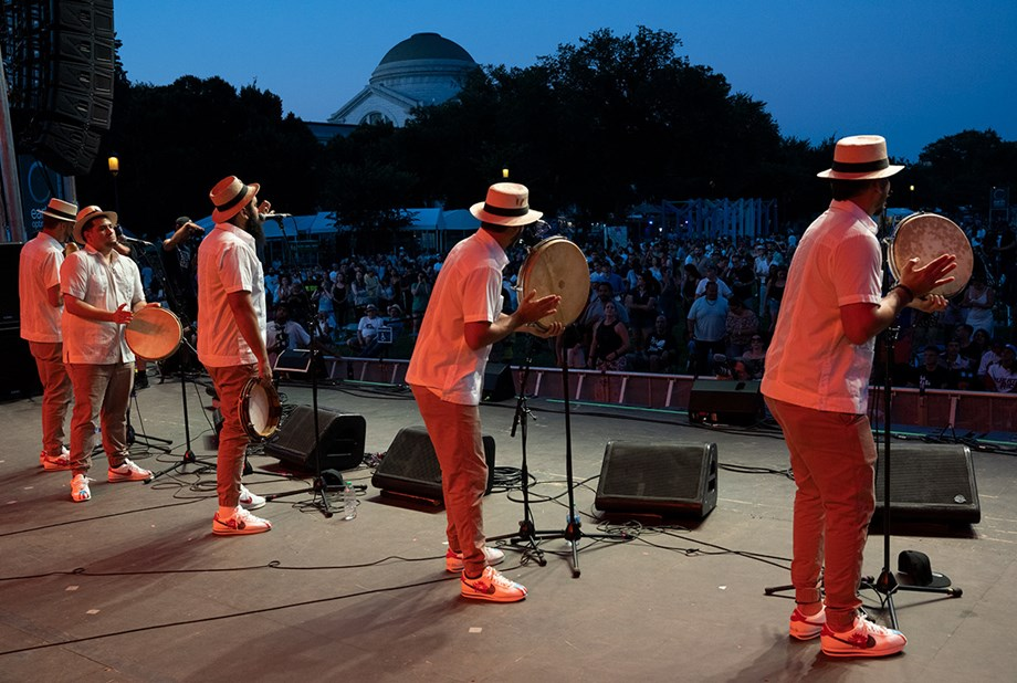Plena at the 2022 Smithsonian Folklife Festival, by Josh Weilepp, provided by the Ralph Rinzler Folklife Archives. Smithsonian Center for Folklife and Cultural Heritage.