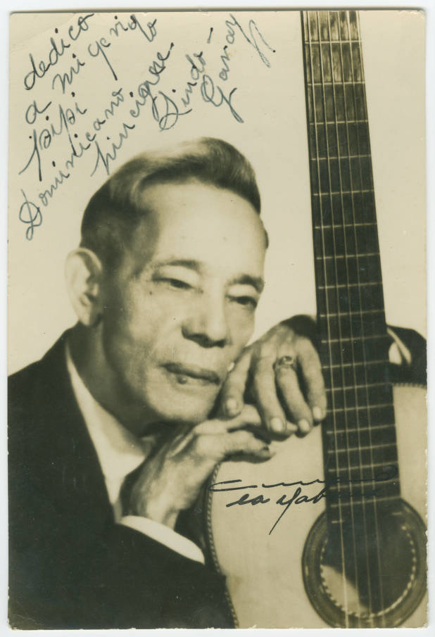 Musician and Composer Sindo Garay Posing With a Guitar, photo by Armand. University of Miami Libraries.