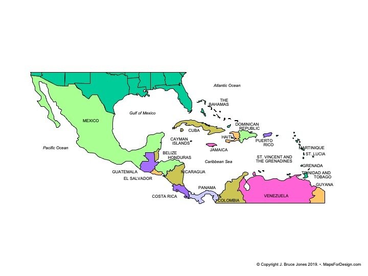 Caribbean and Central America Map, by Bruce Jones Design. World of Maps.