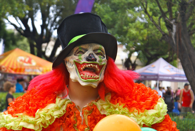 Left: "La Loca". Middle: Woman Wearing a "Viejo" Mask. Right: Scary Clown. Photos by Lowell Fiat. Digital Library of the Caribbean.