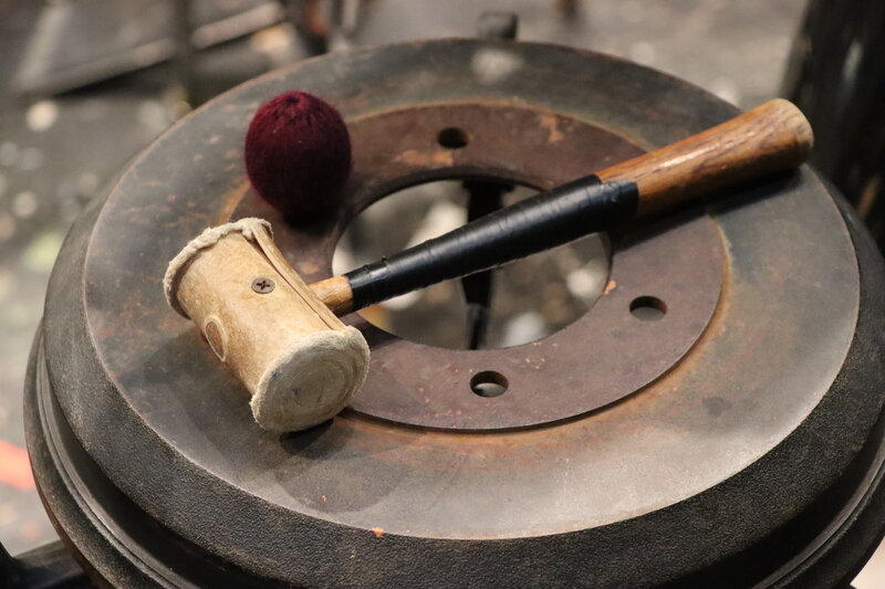 Left: Steelpan, photo by Andrew Alder, CC BY-SA 3.0,via Wikimedia Commons. Middle: The Steel Drums of Kim Loy Wong, unknown photographer. Folkways Records. Right: Brake Drum. Photo 245386347 © Majormetts | Dreamstime.com.