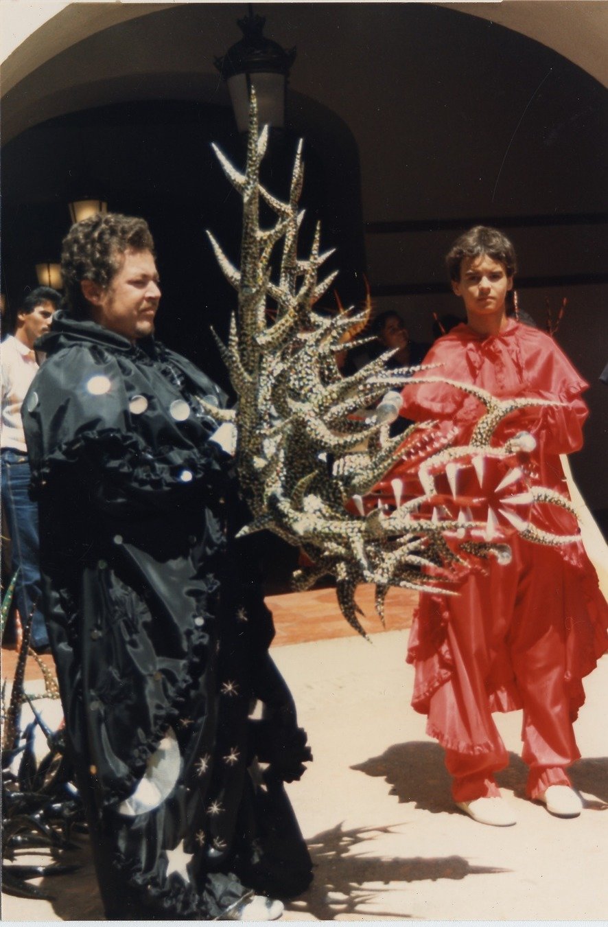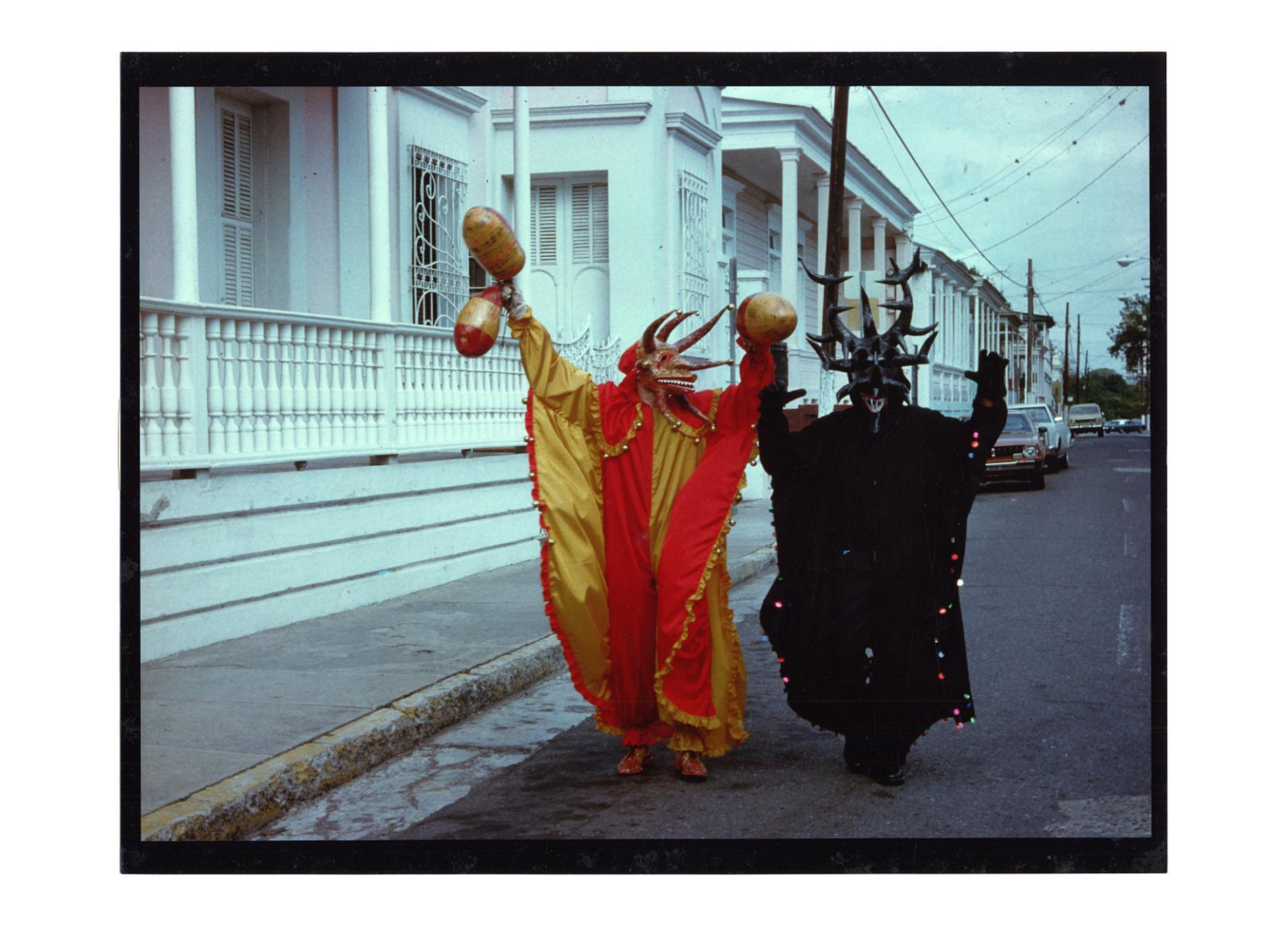 Left: Vejigantes Running Through the Street. Above: Two Vejigantes Walking on the Street. Unknown photographer. National Museum of American History.