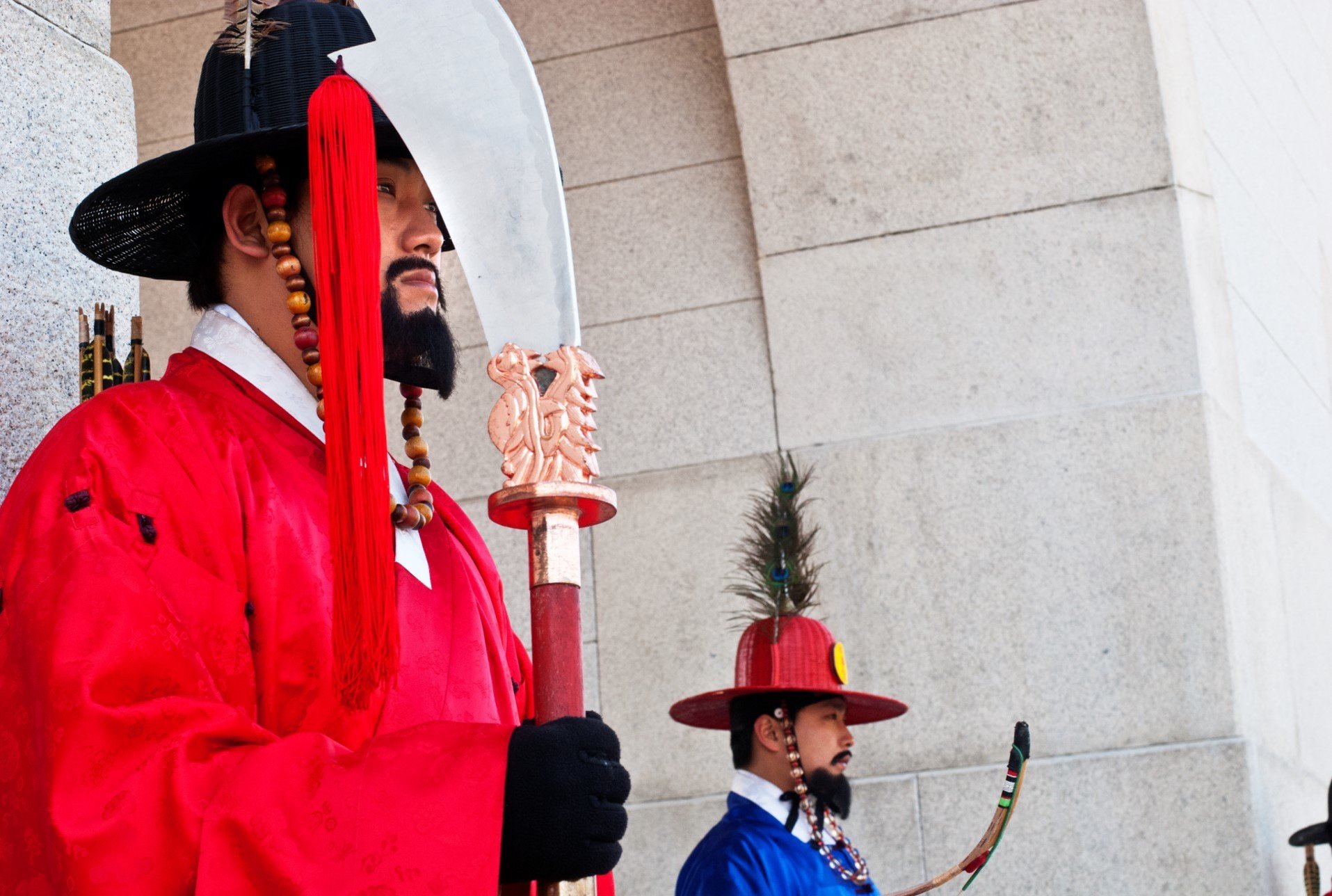 Left: Palace Gate Soldiers (2011), CedarBough Saeji.