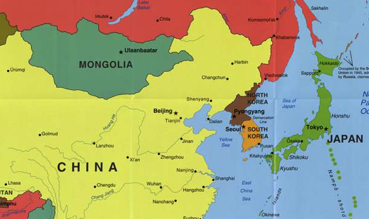 Below: Map of East Asia, by the US Central Intelligence Agency. Library of Congress.