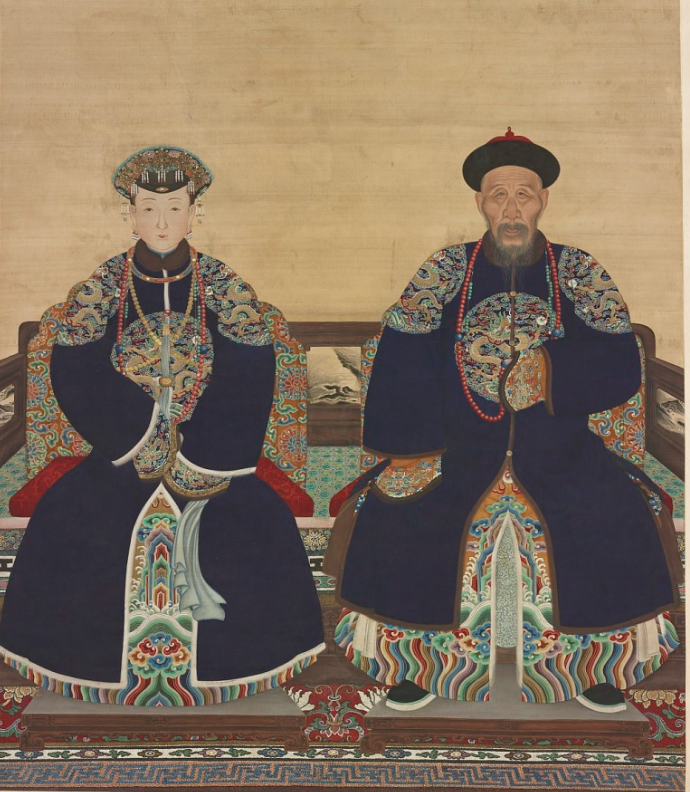 Portrait of Yinti, Prince Xun (1688-1755), and Wife, unknown artist. National Museum of Asian Art.