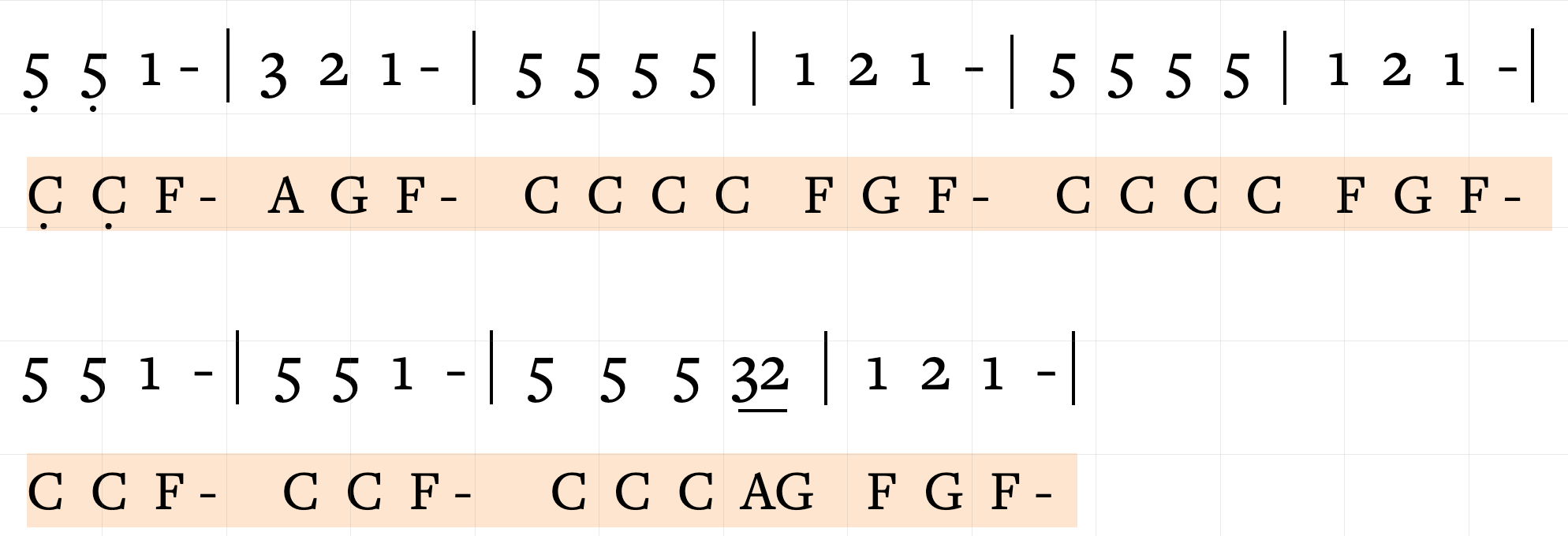 This example shows a common 5 note scale with bronze bells. Sing along!