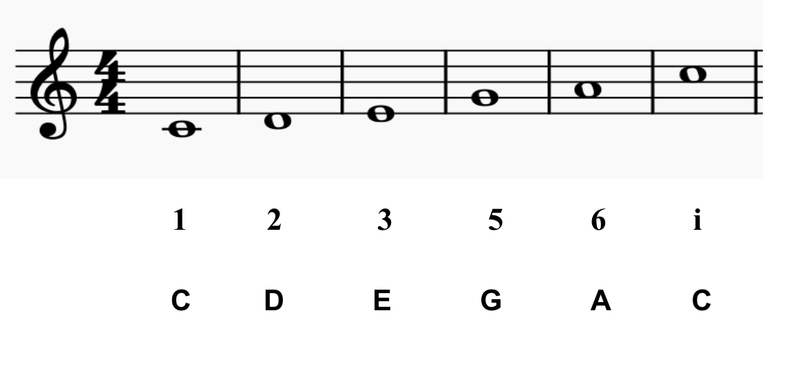 The guzheng uses a 5 note scale, called, "Pentatonic." This means, "Five tones." We will use cipher (number) notation for our pentatonic scale:
